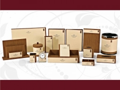 皮质客房皮具,放于酒店客房内,更彰显高贵大方 佛山丰禾的客房皮具制造工艺经过8年的市场洗炼,使得丰禾已成为目前国内的中高档知名酒店皮具制造商 强大的设计团队,销售团队和严谨的制造流程,耐用的品质,都将是你选择丰禾的重要砝码